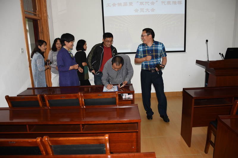 6月14日下午,太阳成集团tyc234cc举行“公司工会换届大会暨‘双代会’代表推荐会员大会”,选举产生太阳成集团tyc234cc新一届工会委员会和“双代会”代表,会议由党总支书记王者旭主持,全院教职工参加。