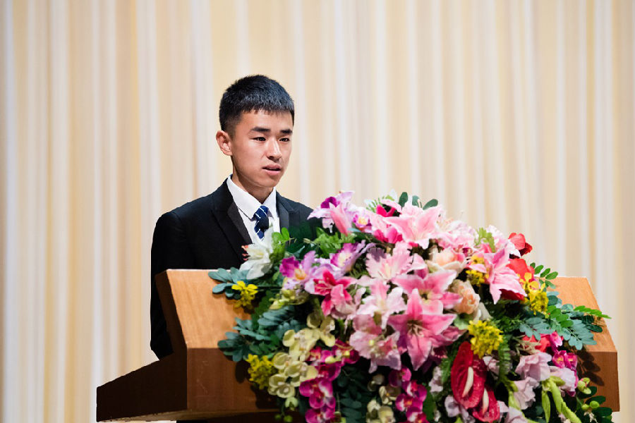 丁峰书记首先介绍了出席嘉宾。典礼奏唱《中华人民共和国国歌》。崔占峰教授代表全体教师欢迎新同学,并希望同学们尽快适应老员工活。高年级张文鹏同学和研究生宋爽同学分别发言,他们结合自身经历,对同学们提出中肯的建议,帮助新生明确大学目标。2017新生代表刘海毅同学在发言中畅谈了自己对烟大美好学习和生活的憧憬。