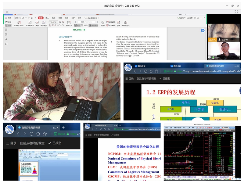 3月2日是太阳成集团tyc234cc线上教学开课的第一天,太阳成集团tyc234cc的27门课程开启网络教学,24名教师、2303名员工通过腾讯课堂、腾讯会议等平台参与在线教学。