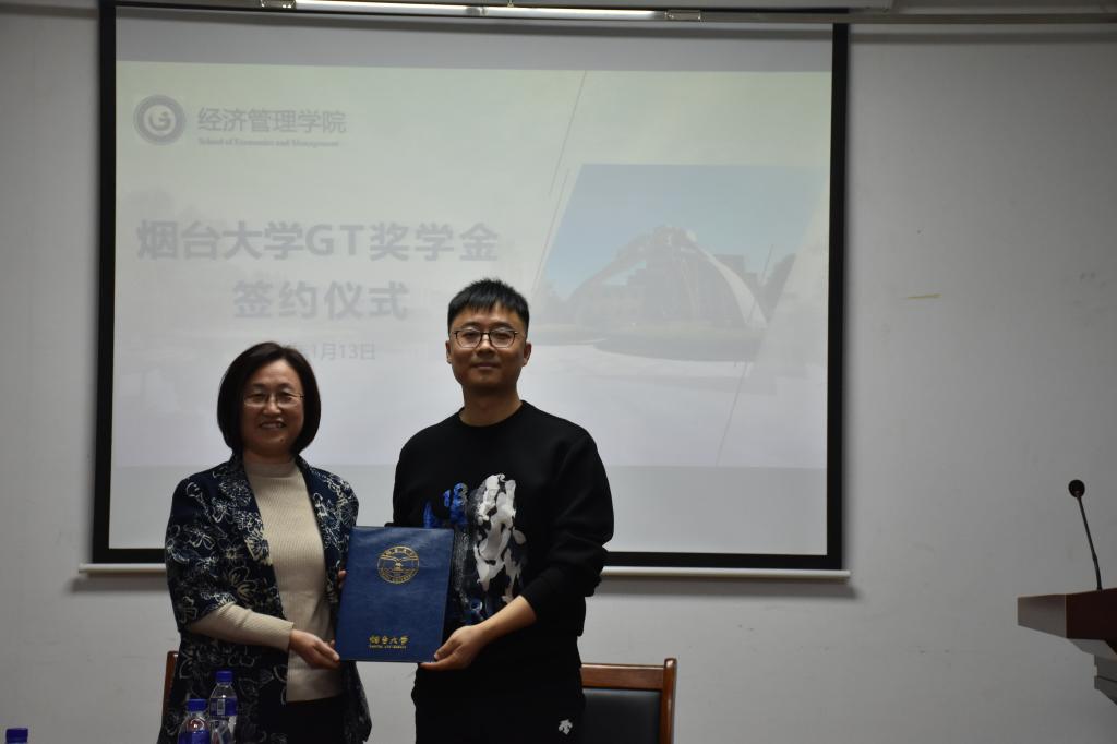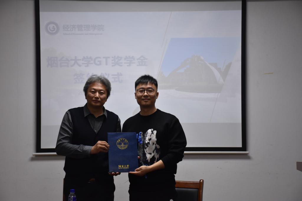 经理宋岩与韩世勤共同签署了“GT奖学金”捐赠协议书,公司党总支副书记赵卉妍与韩世勤员工签署实习基地协议书。