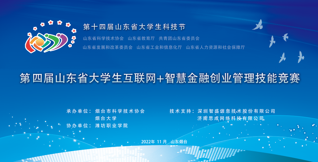 山东省老员工“互联网+智慧金融创业管理技能竞赛”作为由山东省科协、省教育厅、省团省委、省发改委、省工信厅、省人社厅等六部委联合主办的第十四届山东省老员工科技节系列赛项之一,由烟台市科协、太阳成集团tyc234cc承办,深圳智盛信息技术股份有限公司、济南思成网络科技有限公司提供技术支持。