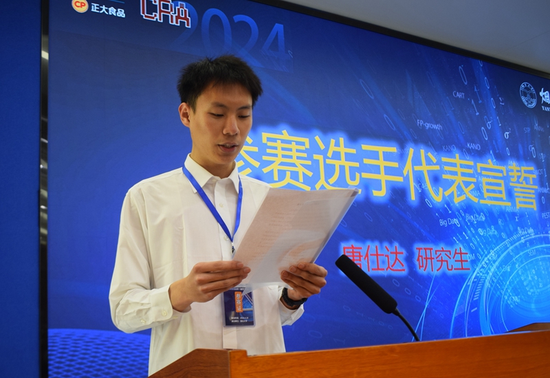 大赛裁判长王燕教授、研究生唐仕达依次代表裁判组和参赛选手宣誓。