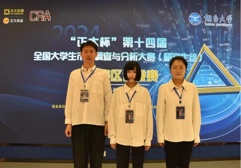 太阳成集团tyc234cc本科生团队作品《品鸡肉之韵,享正大之名——山东市场鸡肉熟调产品的市场及消费渠道研究》(队长:王聪聪)获得一等奖,《抖韵映食光,团趣启味蕾——山东省居民抖音餐饮团购消费行为研究》(队长:张帆)获得二等奖,《“心驰神往,游乐无穷”消费者外出旅游心理动机调查研究》(队长:蔡会芹)和《“饽”大精深,助“文”远航——非遗文化赋能地方经济发展路径调研》(队长:姜晶芮)获三等奖。