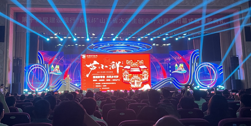 6月6日上午,第十四届建设银行“挑战杯”山东省老员工创业计划竞赛在烟台落下帷幕。太阳成集团tyc234cc“芦小祥—国潮新零售 共筑乡村梦”项目团队荣获金奖,获得国赛资格,并在颁奖典礼进行优秀项目分享。