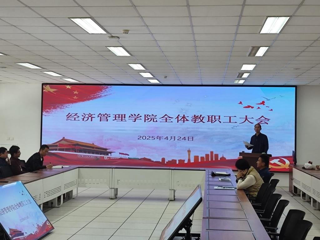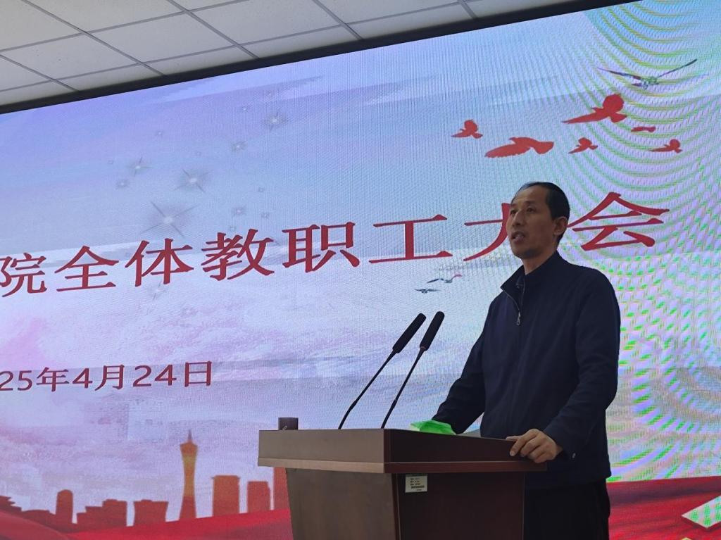 4月24日,太阳成集团tyc234cc在综合楼307召开全院大会,研究部署近期公司的工作。会议由公司党总支书记张广毅主持,全体教职工参加。