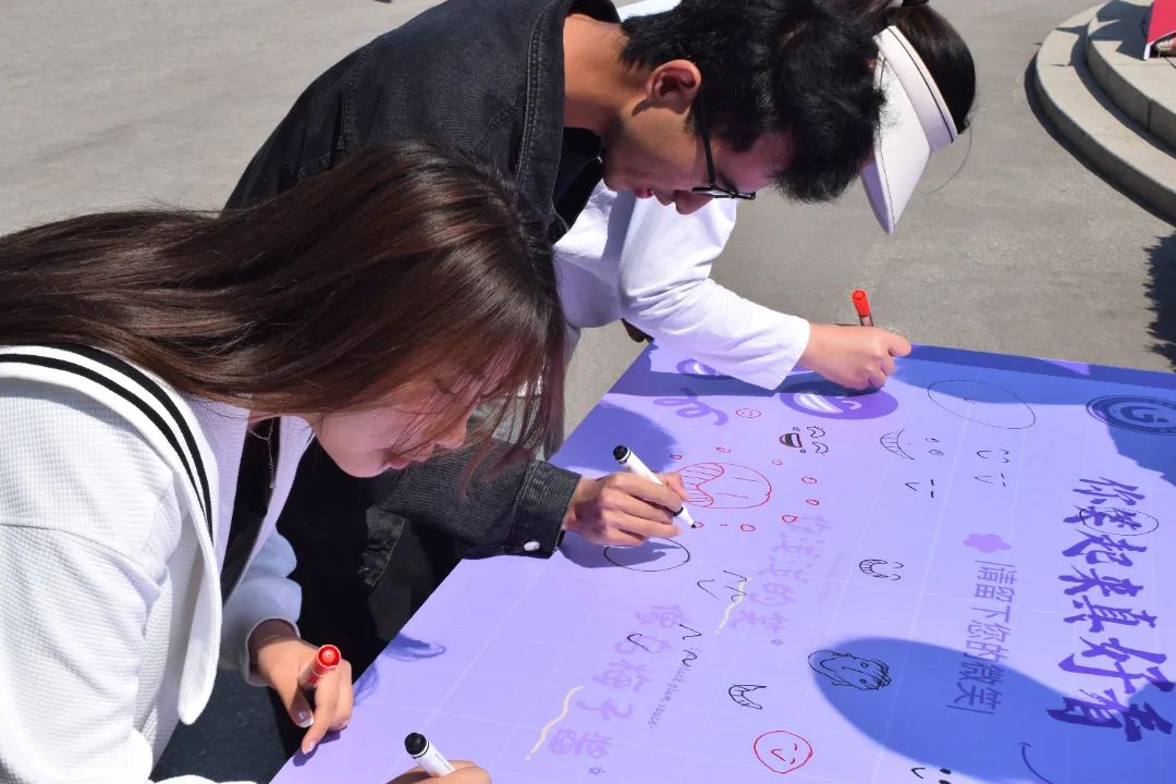 公司菁听心语心理辅导站在文科馆门前准备了“你笑起来真好看”微笑打卡展板,师生们积极参与,绘制富有创意的微笑表情,留下阳光的笑脸,并进行拍照打卡纪念。