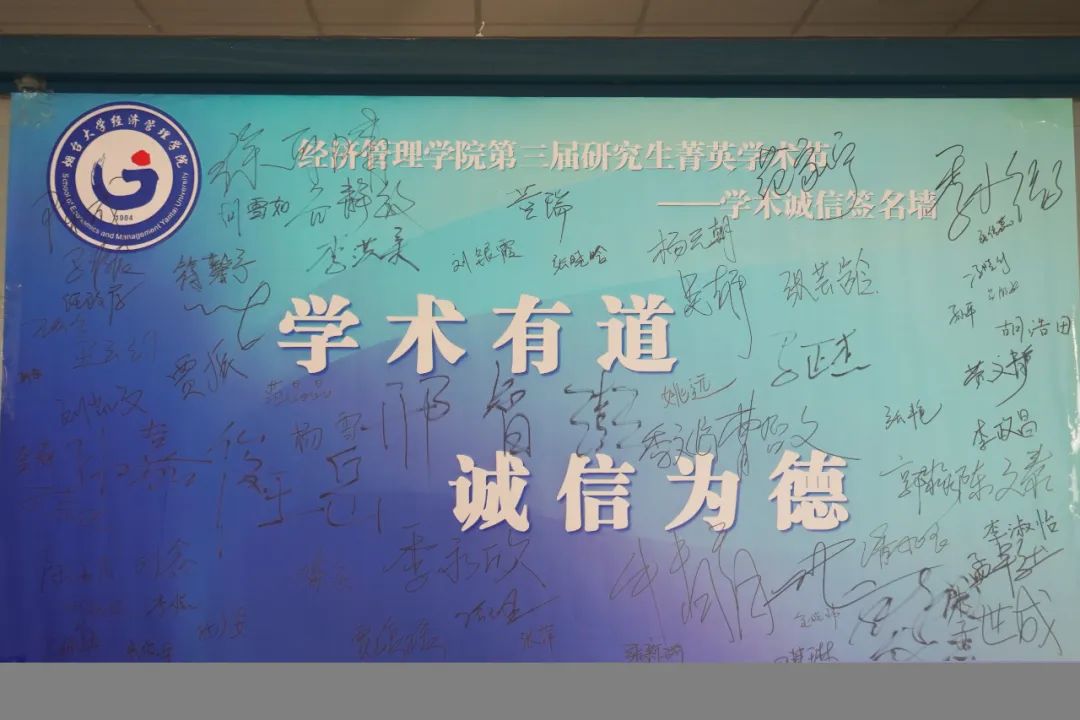 研究生会吴静代表公司研究生会发起《公司研究生学术诚信倡议书》,全体研究生在学术诚信签名墙上签字。2024级农业管理专业曹哲文作表态发言。