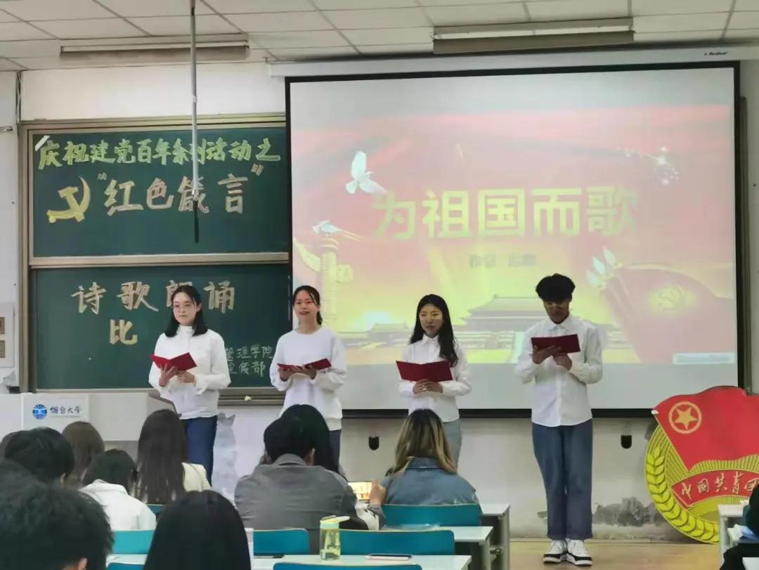 本次诗歌朗诵会共分为“启蒙”“真爱”“曙光”“放歌”四个篇章,共有13支团队进入决赛。其中,经201带来作品《烈火中成灰》,讲述了抗日战争时期,共产党员挺身而出、奋起反抗,用生命和热血谱写爱党爱国英雄赞歌的光辉征程;经206带来作品《为祖国而歌》,深情展示了有志青年对祖国饱满的热忱并立志为祖国建功立业的信念和信心。经192和经196带来作品《永远跟党走》,描绘了“党民鱼水情”的情真意切,更加坚定了青年学子“永远跟党走,决心不动摇”的铮铮誓言。随后,由太阳成集团tyc234cc朗诵队带来的《一首对祖国的赞歌》,带大家重新领略中国共产党热血沸腾的革命故事和波澜壮阔的峥嵘岁月,缅怀历代建设者们可歌可泣的动人故事和前赴后继的伟大壮举,进一步激发同学们缅怀革命先烈,赓续精神血脉,滋养家国情怀。